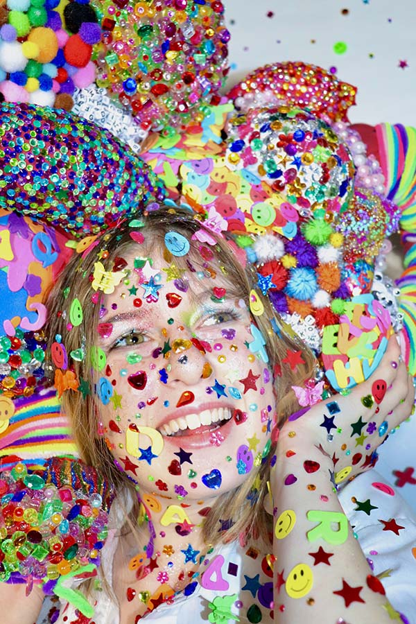 Throughout my childhood I struggled with difficult problems surrounding my familial life and I know it’s not uncommon. When my parents got divorced, I tried everything I could to keep my family together, but when you’re that young and you don’t understand how relationships work you find that the only thing you can do is pour yourself into the problem and hope a solution occurs. The colorful and childish materials represent my futile efforts to keep things from falling apart. I thought by metophicaly throwing stickers and glitter over a problem I would fix it. The figure on the right is a depiction of what actually happens when you try to put a bandaid of sparkles over a family falling apart, it still falls apart.