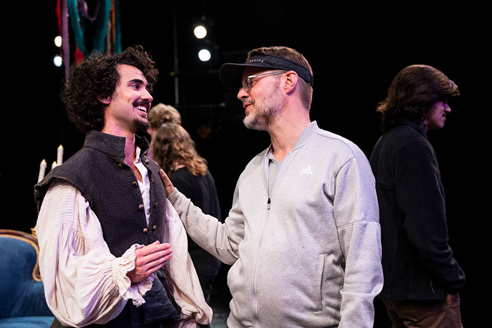 Carl Forsman directing the Spring 2024 School of Drama production of "The Rover." / Photo: Allison Lee Isley